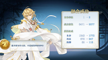 这样就是融合成功啦,角色升级后各种数值都会有提升哦!