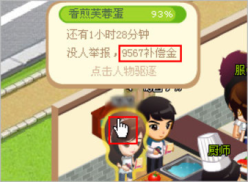 在QQ餐厅中,驱逐和举报好友学艺获得的金币主要跟好友学艺的时间有关系,具体金币数请在驱逐和举报前点击人物。如图: