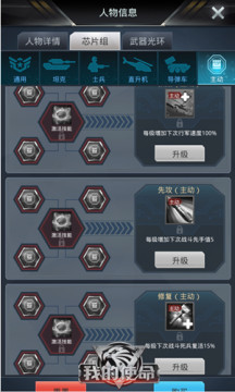 第二点,升级芯片。芯片是提升部队的基础属性和各个武器的能力,所以升级芯片也是提升战力途径,不能忽视之一!