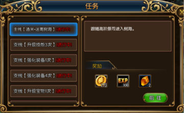 或者在任务UI界面内点击”前往”按钮也可以自动领取任务、追踪、提交任务。