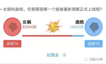 作者:网友整理 人气:0王者荣耀官方最近搞了一个关于女娲和庞统上线活动的投票,玩家需要在两个角色中选择一个,很多玩家还不知道投票地点在哪,更有甚者,不知道投哪个好。现在女娲的票数明显高过庞统,一起来看看投票地址入口吧。