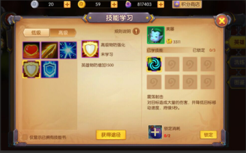 英雄技能共12个,除2个主动技能外,10个被动技能,通过洗练和技能书学习可以获得。