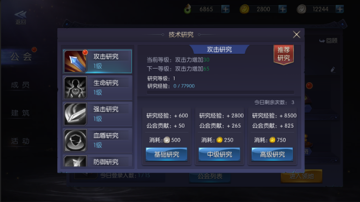 玩家可以每级进行3次公会研究,每研究1次,公会科技的进度都会有所成长。