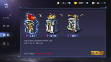 每一个公会建筑都有自己的功能,以及对应的升级条件。