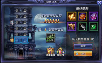 每天试炼秘境挑战记录会重置(贵族12及以上额外获得一次重置机会),与爬塔任务相同,每层通关时间越短,挑战的层数越好,经验越多。建议玩家组满队伍,并且积极抱大神大腿,跟随一个高战会拉怪的大腿,能让你升天!