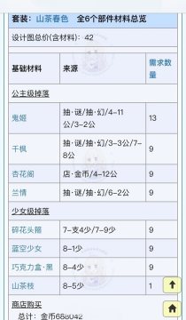 奇迹暖暖山茶春色套装获取攻略 山茶春色6个部件材料获得方法详解