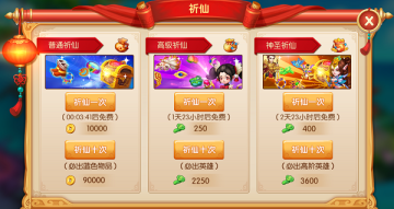2、高级祈仙:每48小时可免费祈仙抽奖1次,最高可抽出三星英雄。