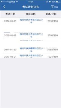 2)打开就能看到预约的人数了,点击右上角的【筛选】,分别设置确认自己所在城市、考试科目、日期以及车型等,最后点击【确定】就可以了。(如下图)