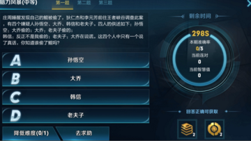 1.庄周睡醒发现自己的鲲被偷了,狄仁杰和李元芳前往王者峡谷调查此案,有四个嫌疑人孙悟空、大乔、韩信和老夫子,谁偷了鲲?
