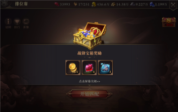 胜利后能获得战锋勋章,集满10个,还能开启战锋宝箱,获得丰厚的战利品!每次获胜,大概能获得4个左右的战锋勋章,集齐10也只需要战胜3次,也就是10分钟不到的时间,你就可以获得38万金币+4颗升星石+3颗英雄魂石!这个效率可是相当可观的哦!并且随着梯度提升, 报酬更加丰厚!