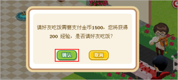 3、选择好友后,点击“确认”即可成功邀请好友用餐,同时从您的餐厅中扣除1500金币,您将获得200经验。如图: