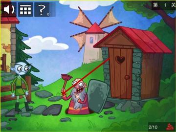 首先点击厕所门会出来一个拦路者,我们如下图箭头所示滑动,给他一脚,就可以过关了。