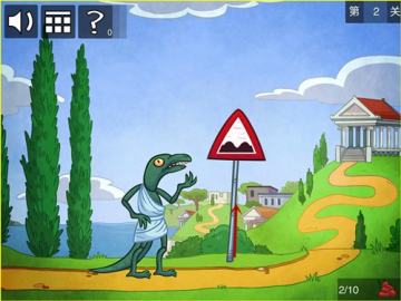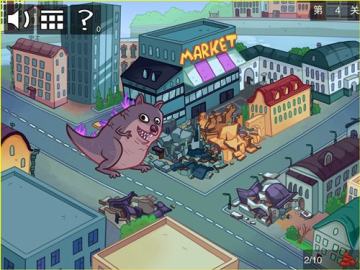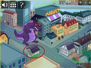 本关首先点击一下路面,会出来一只恐龙,然后点击下图所示小房子。