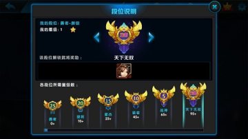 当玩家初次达到某个大段位时可以解锁新的武将作为达到该段位的奖励。