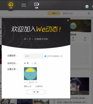 进入个人主页,wegame会有类似社区、微博之类的动态,完善信息进入下一步