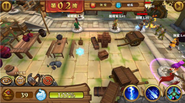 游戏中要小心,玩家可以收集屏幕中落下的光球,足够的能量就可以释放技能来为武将回血或冻结敌人。