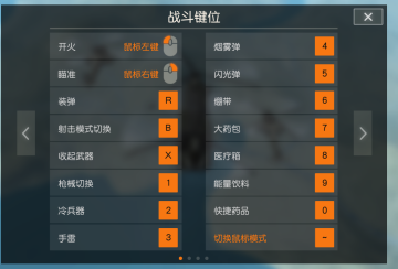 上面这个键位设置,包含了所有的可用到的功能,这也是绝地求生的按键模式,大家玩多了就会发现这个键位真的很好用的,建议大家别改,当然要改也可以,根据自己喜好就行。
