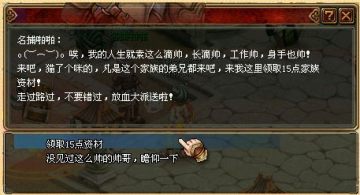 不要以为只有这些奖励了,还有个人资财拿呢。在鬼眼神偷死亡后,npc“神捕啪啪”便会出现,家族成员每天可以与其对话获得15点个人资材。小记特别提醒,神捕啪啪只会存在3分钟,家族成员一定要及时领取家族资材。