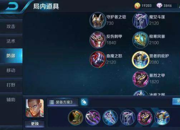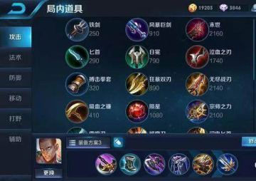 解析:半肉打野出装,由于达摩的被动会回血,所以达摩可以无伤打野,巡狩利斧提高清野效率,前中期一把暗影战斧足够一套秒人。魔女斗篷和不祥征兆提供生存能力,破军能把大招第二段效果最大化,收割能力更强,后期把打野刀换成复活甲,生存更强劲。