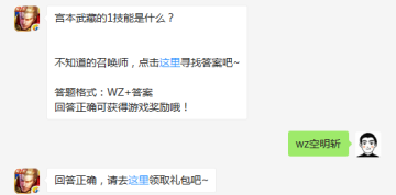 题目:宫本武藏的1技能是什么? 答题格式:wz+答案,今天的王者荣耀答案小编为大家整理好了,希望对玩家获得微信额外的奖励有帮助,不清楚11月26日王者荣耀游戏每日一题答案的玩家速来看看,希望对大家获得腾讯微信免费发放的奖励有帮助。