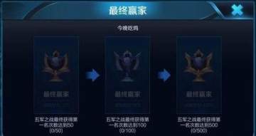 成就系统也多了一个全新成就,名为最终赢家,有趣的是配文“今晚吃鸡”,达成该成就的条件是五军之战模式获得第一名的次数,若是达到500次将获得黄金成就!