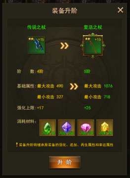 3. 新增5阶装备:4阶装备可通过装备升阶的功能升阶为5阶装备