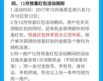 时间:12月每周五周六及12月10日-12日还有机会领到大额惊喜红包,最高1212元