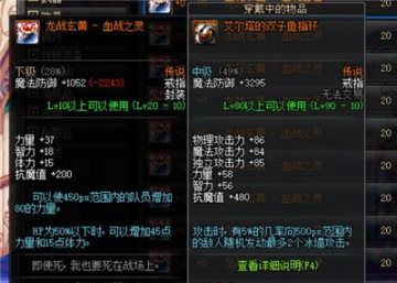 戒指直接选择龙战玄黄,可以增加队员80点力量值。这件装备虽然是传说,但是因为等级和属性的缘故,只有200万金币左右的价格。