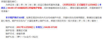维护时间:2017年12月08日(本周五)04:00-07:00