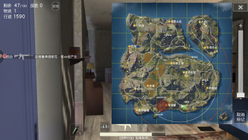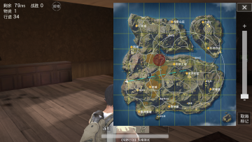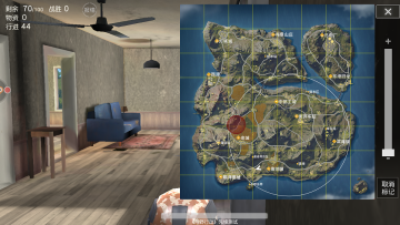 首先,在第一波安全区缩小提示时看一下自己与安全区的距离(如下图),如果刚好处在安全区,那么此时应该做的,就是就近找个房间藏好,然后静静地等待下次。(是的,你没听错,就是这么怂)