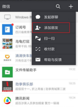 1、打开手机微信,点击右上角的“+”号,选择“添加朋友”选项