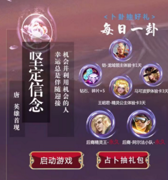 王者荣耀随着新版本盛世长安的上线,增加了许多对应的活动,qq会员就为大家准备了明世隐每日一卦活动,参与活动可以免费抽取后羿精灵王和阿尔法小队永久皮肤,赶快来试试吧,说不定你就是下一个欧皇。