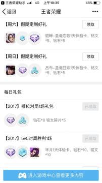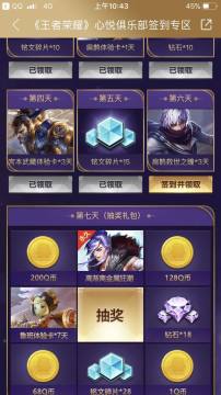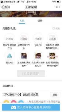 再下载一个王者荣耀助手 这个应该大多数人都知道的 每天刷下活动里看有没新活动 基本都有送体验卡 钻石和碎片的 还有每天签到里面 累积起来一周也很多了