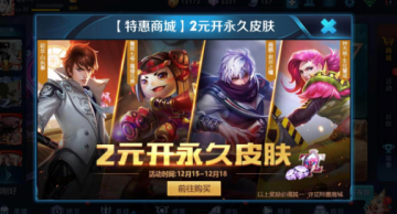 特惠商城2元开永久皮肤活动,持续时间12月15号到18号,也就是这个周末。大家千万不要被宣传图欺骗以为只要抽奖了就必得皮肤。你也有可能抽到钻石或是铭文碎片。