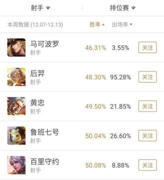 在排位赛中,玩家会更加认真的游戏。但是可以看出后羿重做之后,在排位中的胜率居然是倒数第二。