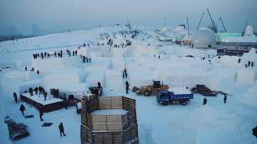 做为哈尔滨的民俗节日,采冰节期间,哈尔滨的采冰汉子们会穿上传统的服饰,跳起萨满舞,进行着古老祭祀仪式,将第一块圣冰从江面缓缓拉出,而第二块福冰将用于王者荣耀园区的基石,届时王者荣耀的logo将会雕刻在这块福冰上,传统的冰雪雕艺术家们将通过一双双炽热的双手,分割、打磨、拼嵌,最终变为一场冰雪的艺术盛典,在日光下的纯洁,在夜晚灯光映衬下浪漫,这,便是一切的开始~