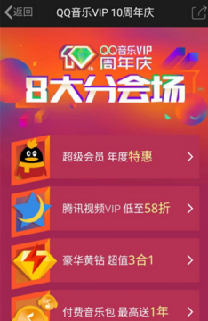QQ音乐VIP10周年庆8大分会场活动地址 腾讯视频vipQQ音乐vip低至5.8折