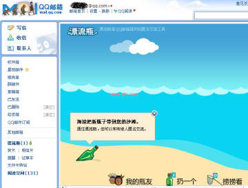 作者:丫丫 人气:0漂流瓶是QQ邮箱提供的匿名交流工具,QQ邮箱漂流瓶是QQ空间小纸条升级为短消息的新功能,漂流瓶是人们穿越广阔大海进行交流的有趣方式,投进大海的漂流瓶不知道将漂向何方,被何人捡到,充满着未知的神秘气息。QQ邮箱漂流瓶将这种形式搬到线上,欢迎您来尝试!