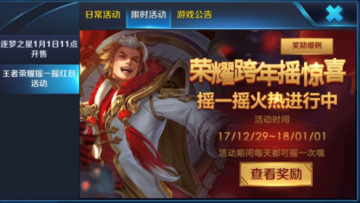 玩家更新到最新的游戏版本,然后点击右侧的活动列表,再点击限时活动一栏,然后进入王者荣耀摇一摇红包活动。就可以查看当日获得的奖励了。