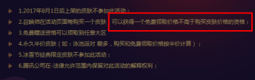 所以玩家如果买45块钱的皮肤,那么只会送45或以下的皮肤。