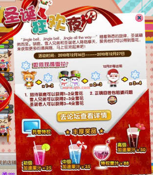 12月7日晚圣诞节限量版场景上线!购买圣诞节限量版套装额外赠送圣诞节活动专用雪花哦!还不赶快行动?比别人先行一步,就离终点更近哟,圣诞节场景将于圣诞节活动结束以后停止购买!