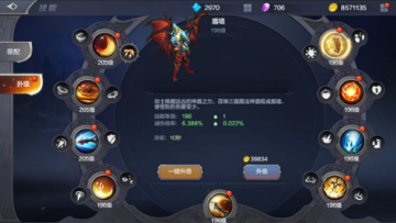 升级右边的技能,生命之光,提升战士的最大的血量上限,还有持续一段时间就会释放一次,推荐升级满级。