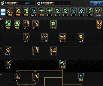 Tp技能部分,将所有无色的tp点满即可,剩余tp可以给蛇腹剑:刺。