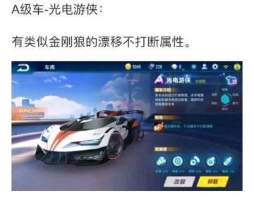 光电游侠作为一款a级车,即将上线,这辆赛车在氮气方面就一个字:强,快速集氮和强大的氮气推力,让它领先于其它的A车。