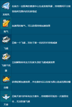 以上是qq飞车手游中道具赛的所有道具介绍。这里小编着重的将一下几个比较难使用的道具。