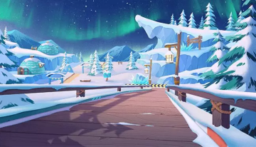 处于北极的一个小镇,完全被冰雪覆盖,雪是山川写下的诗,镇上房屋的一盏盏灯给人增添了一丝温暖,路边的动物正欣赏着一场刺激的赛车比赛,车手穿梭于极地冰镇间,享受着冰雪大世界。
