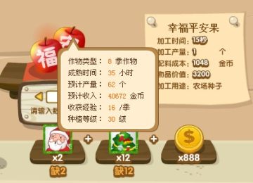 12月24日,温馨的圣诞节平安夜即将到来,在农牧场上线圣诞节活动的同时,加工坊也为大家准备了又红又大的幸福平安果和漂亮可爱的幸福猫。还在等什么,还不快去收集卡片来加工这诱人的果子!