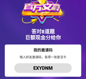 掌阅百万文豪邀请码获得后,就可以额外获得一次复活的机会,下面,我们将为你提供免费的邀请码,希望能够帮助到大家。