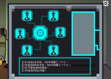 返回大厅,同样触碰机器发生谜题:在棋盘上摆放棋子,满足条件。其中一个解如下图: