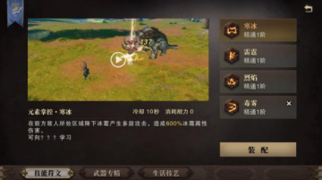 小区域降下多块冰雹造成伤害,前摇长,释放后攻击区域固定,和2技能一样适合巨兽倒地或被控制,但由于攻击较为分散,攻击总和又偏低,主要用于针对巨兽弱点属性发起攻击方有奇效;可惜该技能其他元素属性的符文都在大导师亚夏手里,亚夏导师名高权重,难以讨好,以至3技能前期难以应用。